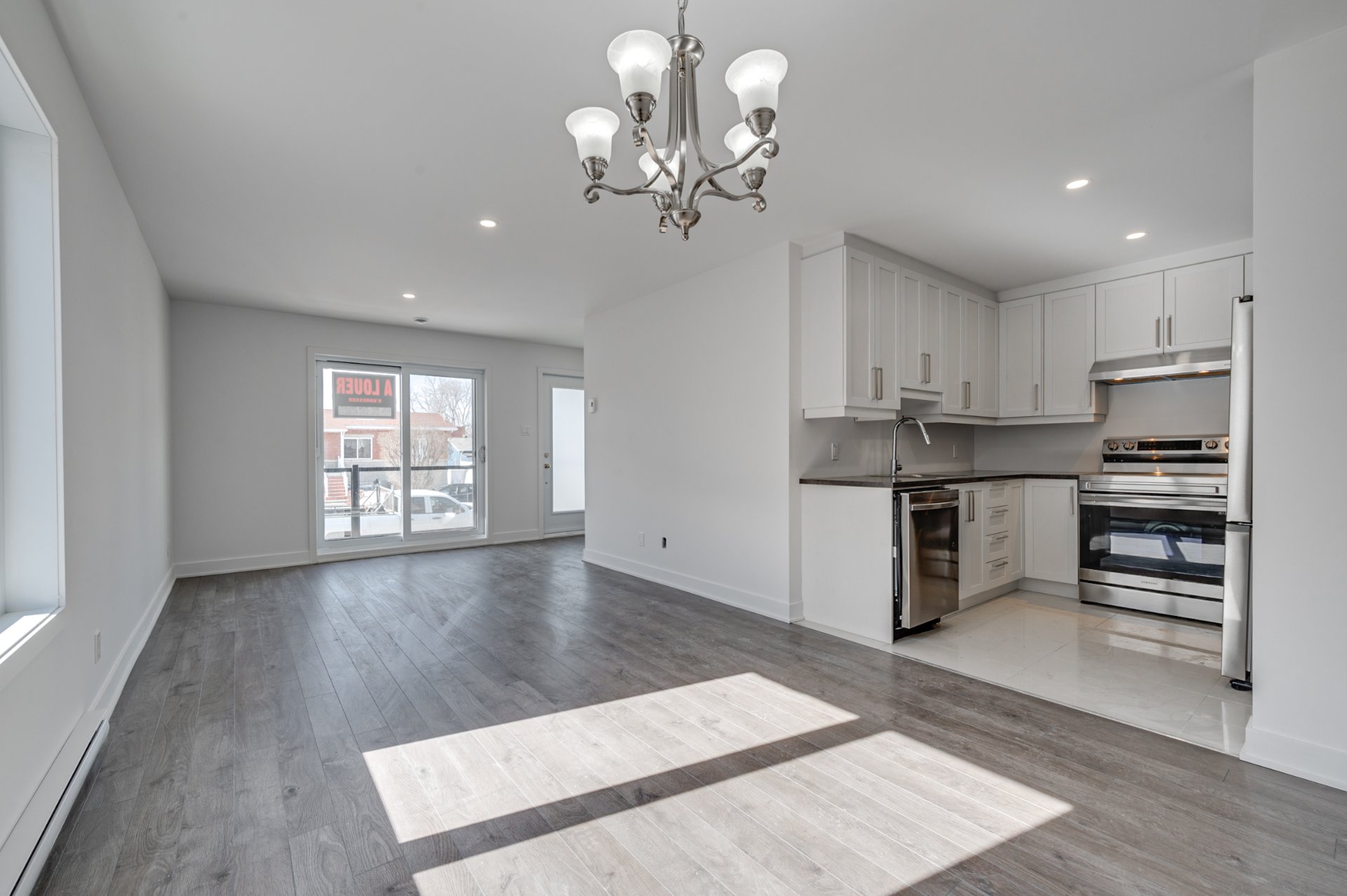 Modern kitchens open onto a living and dining area, all