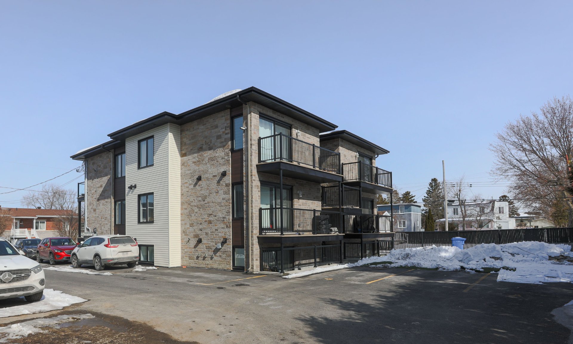 Each unit features its own private balcony with modern
