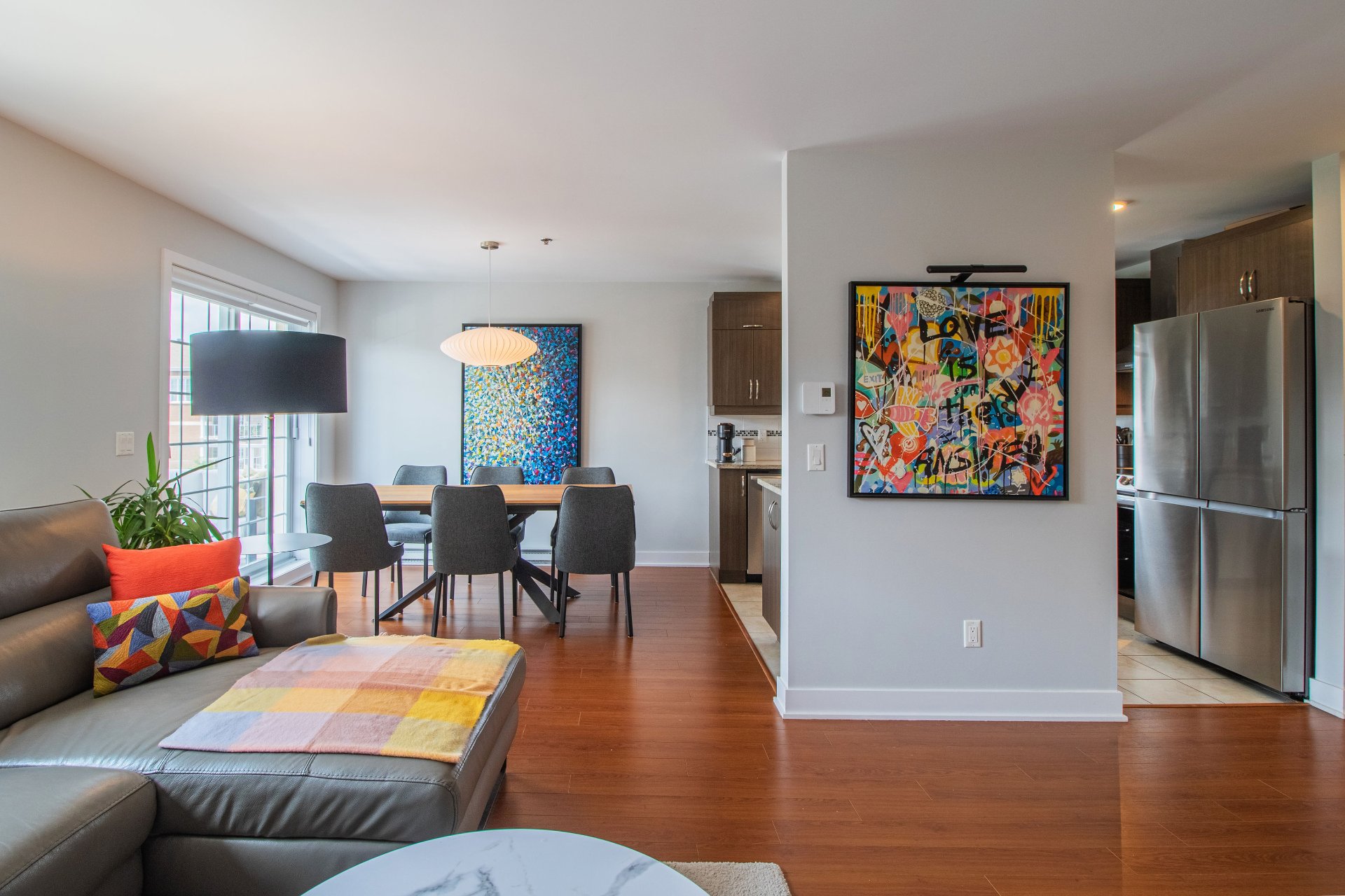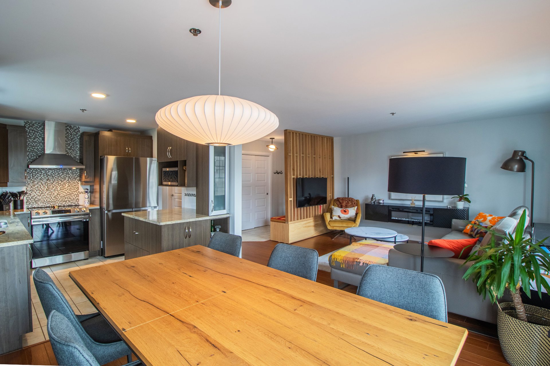 - Open living space with a kitchen, dining room, and living