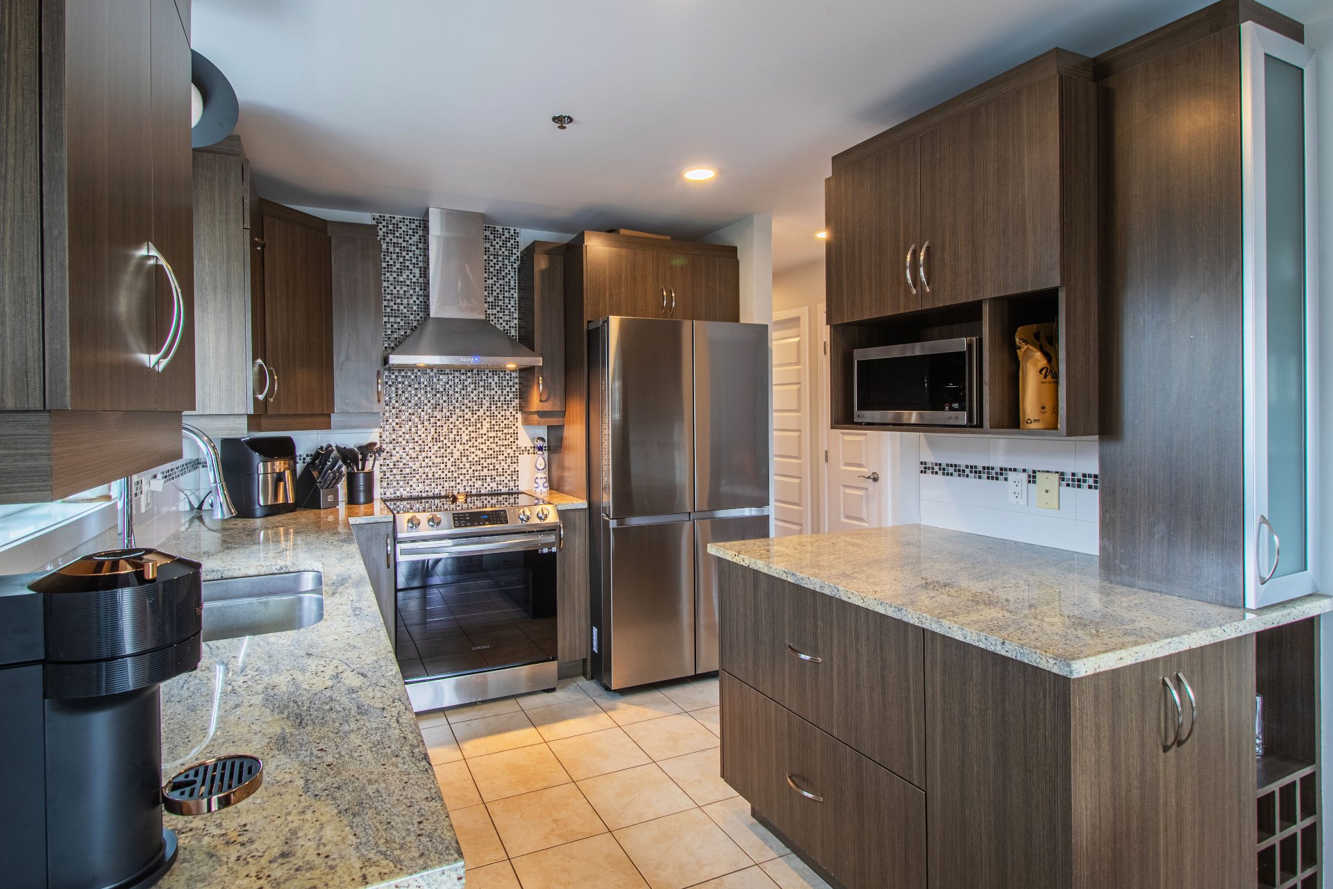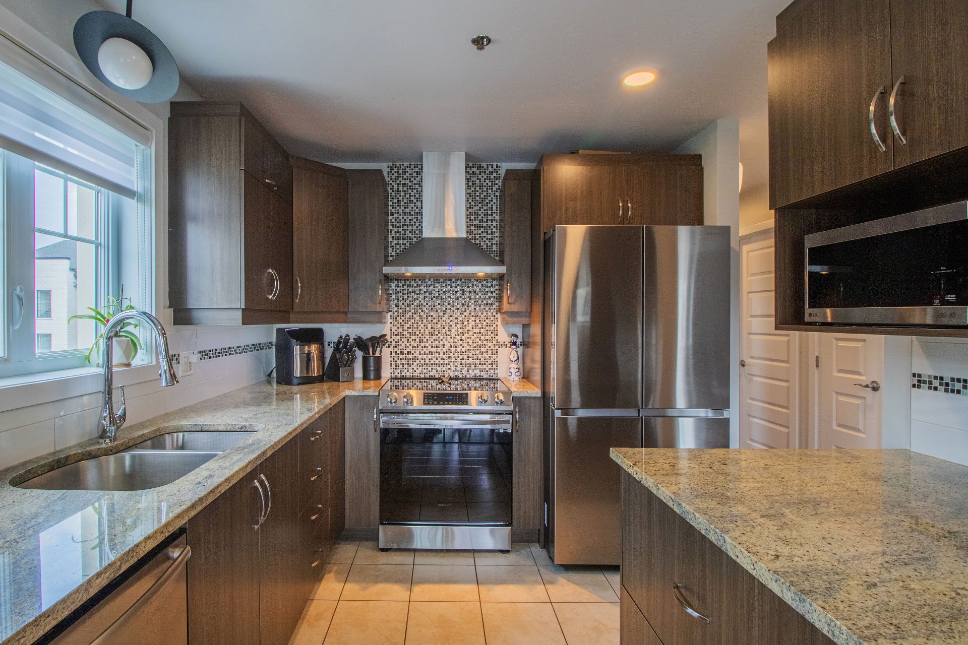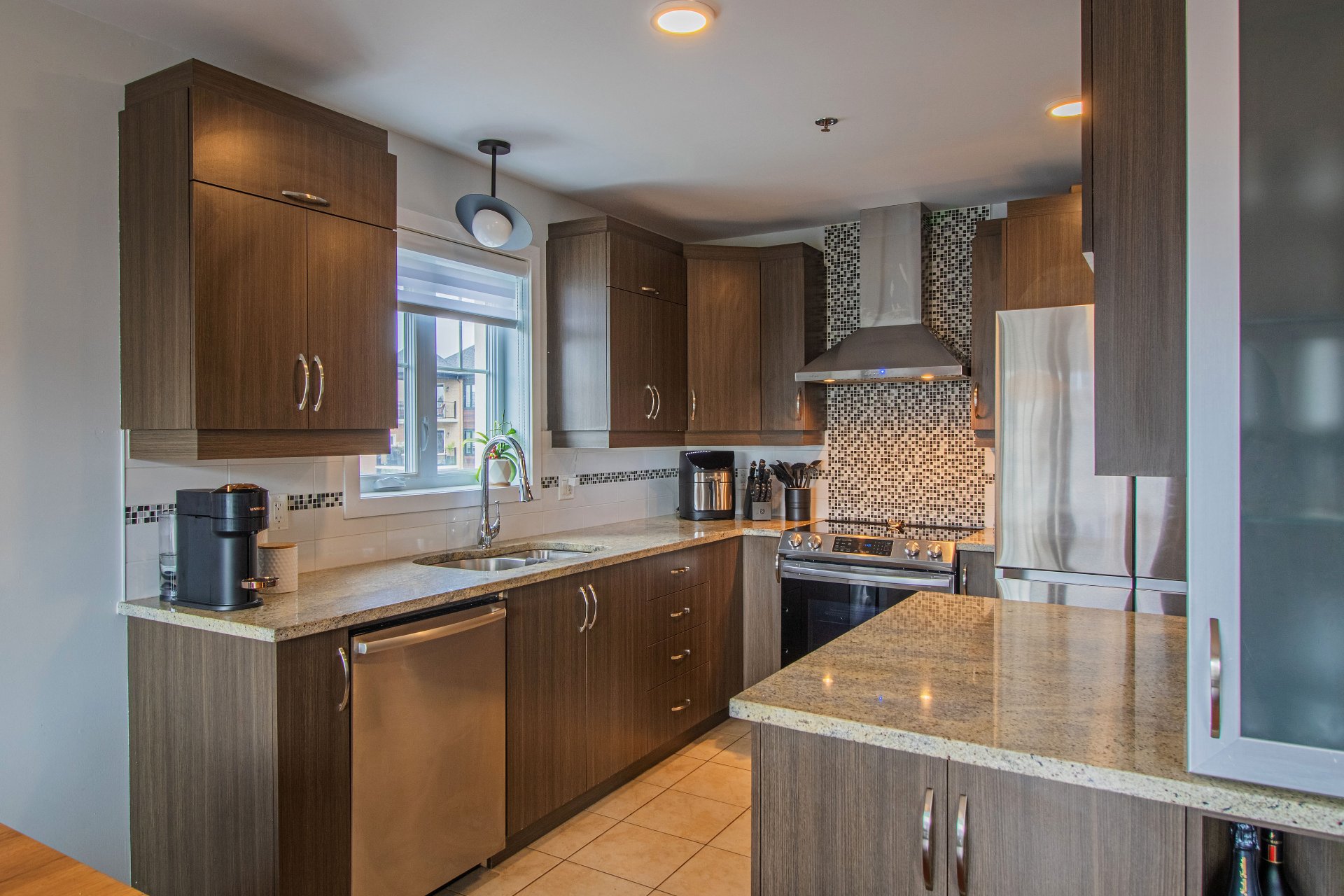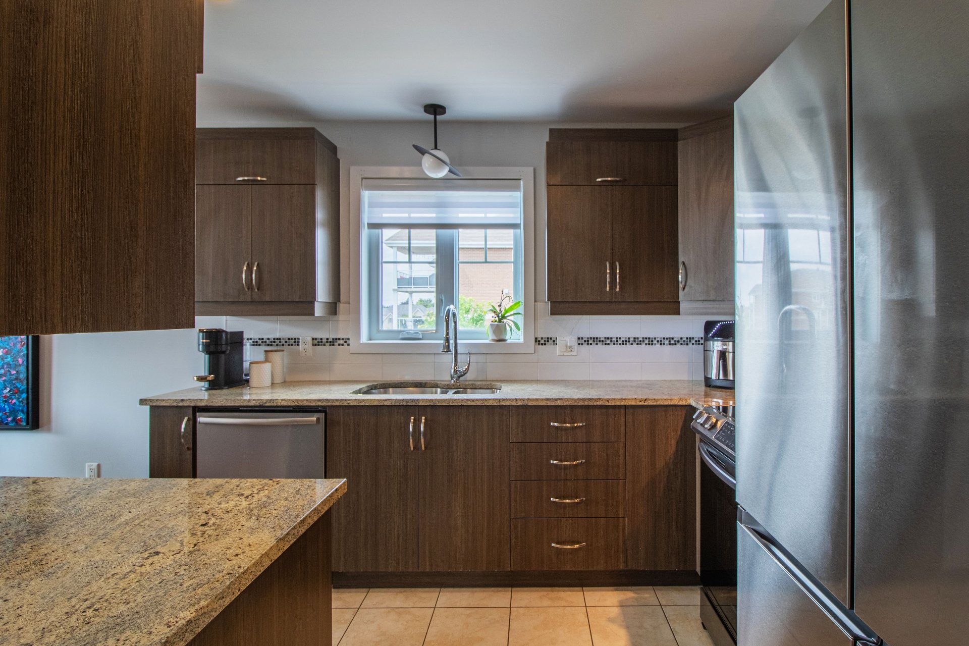 - Modern style with stainless steel appliances, granite