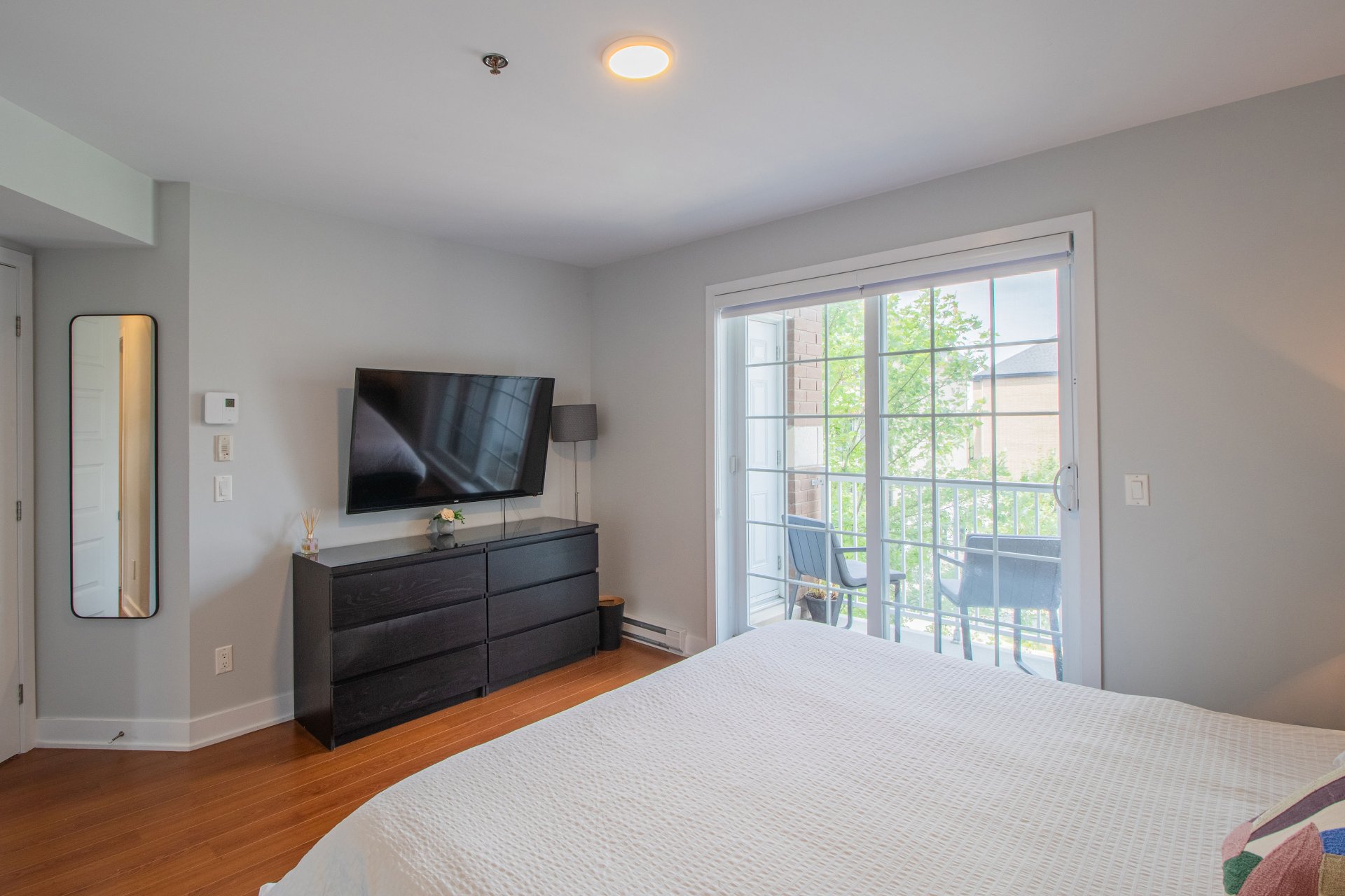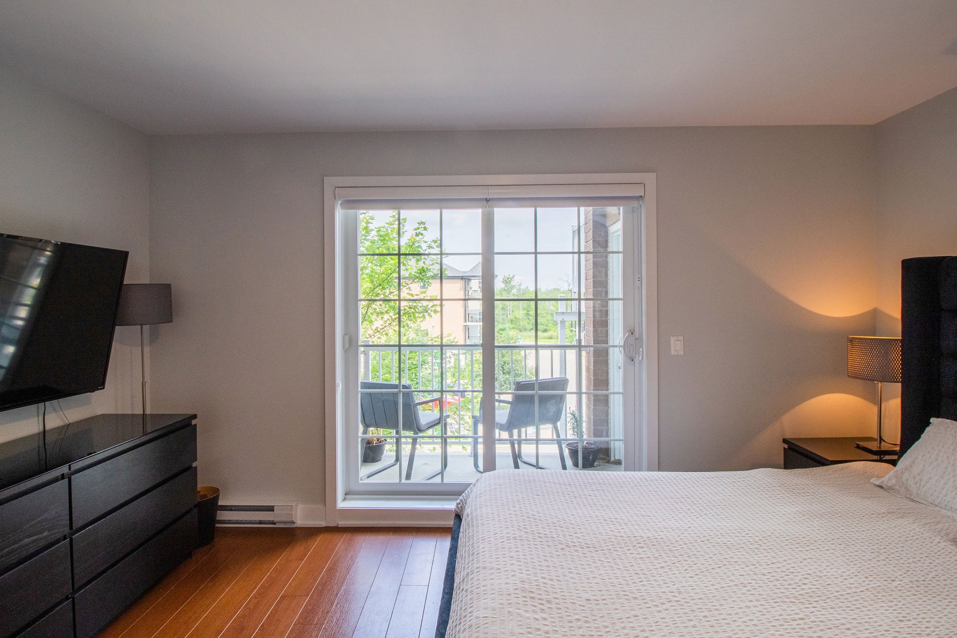 - Spacious balcony accessible from the kitchen and living