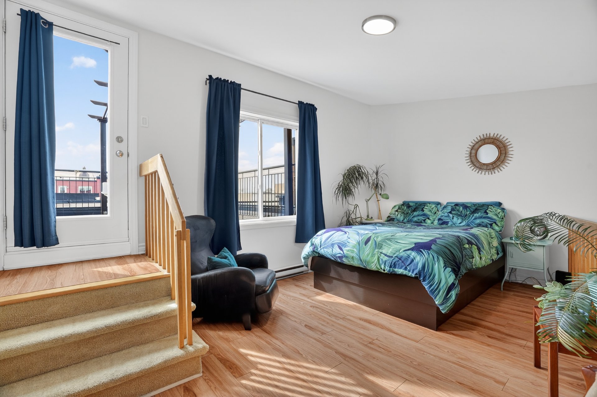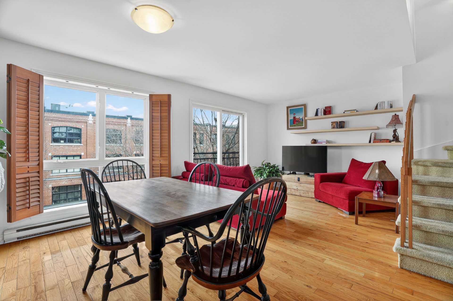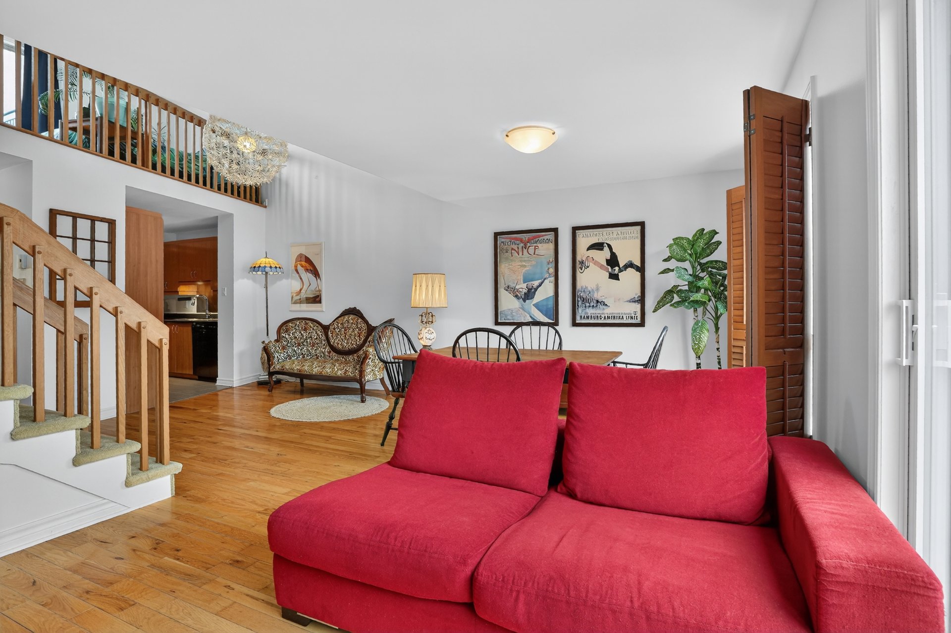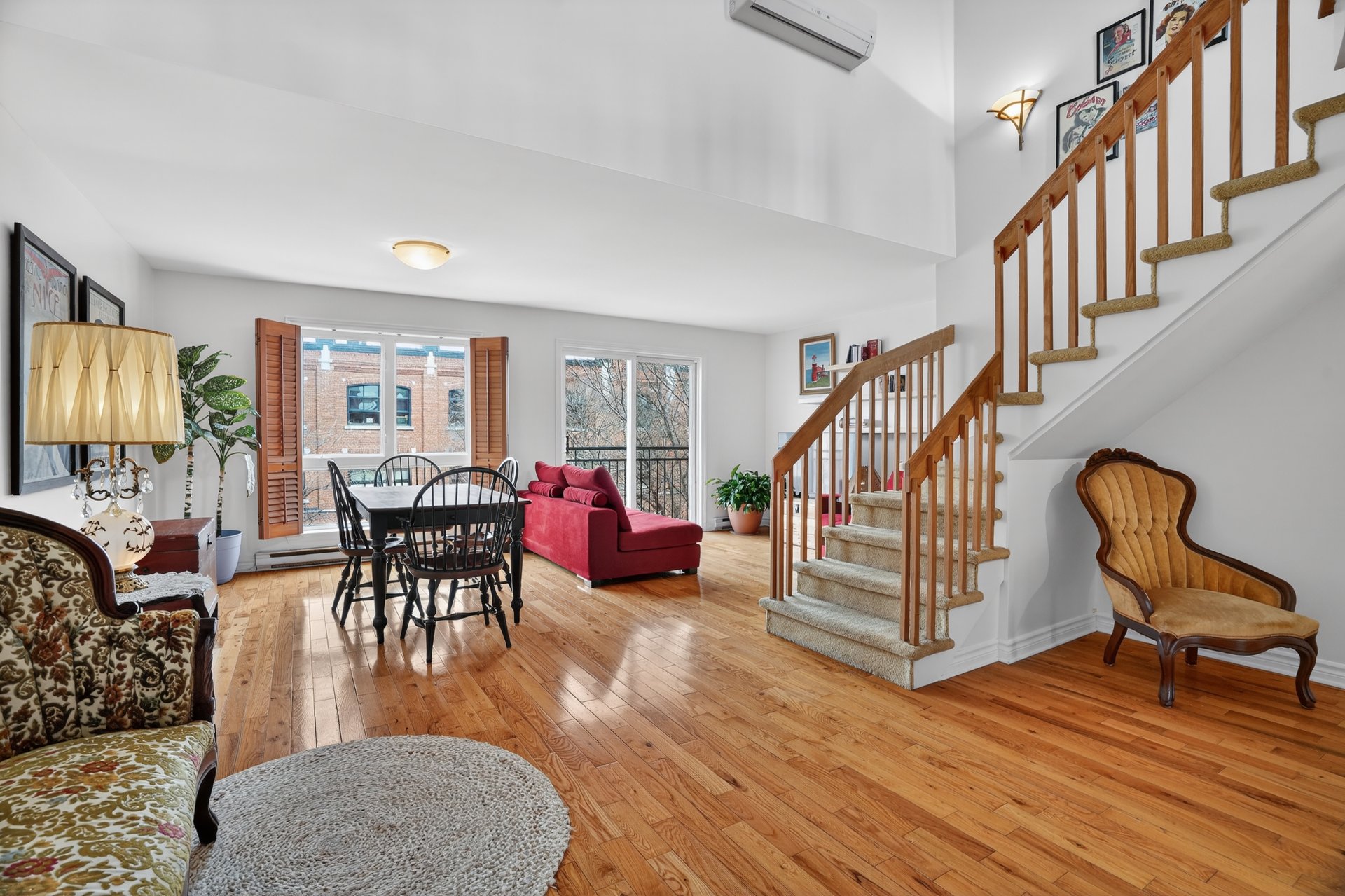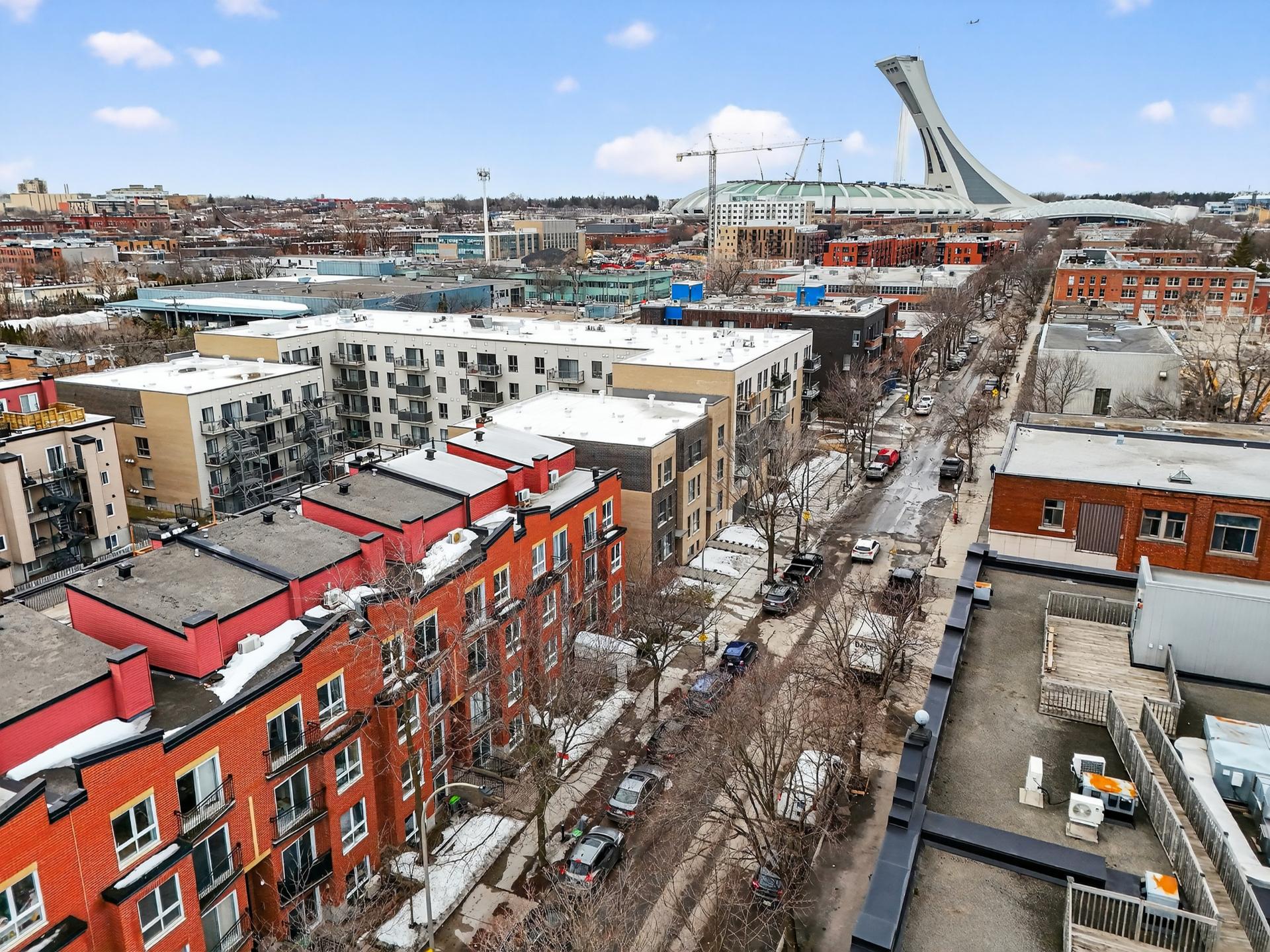 Discover this beautiful condo with mezzanine, a bright and inspiring living space located in the heart of one of Montreal's most vibrant neighborhoods. From the moment you enter, you will be charmed by the sense of space and natural light that defines this property. Its cathedral ceiling and generous volumes create an airy atmosphere where every room feels open and inviting. The spacious and welcoming living room is perfect for relaxing or enjoying time with friends. The mezzanine can serve as a home office, a reading nook, or a cozy relaxation area. From the terrace, take in the view of the Olympic Stadium and enjoy the fireworks lighting!