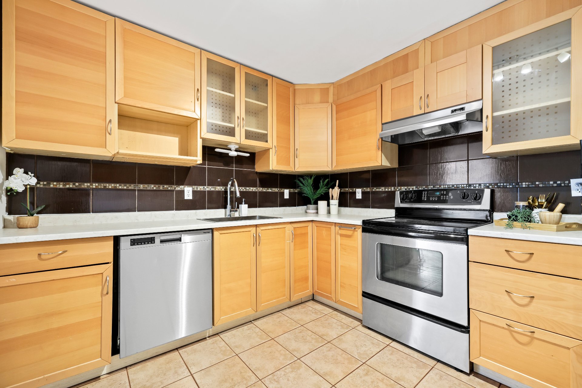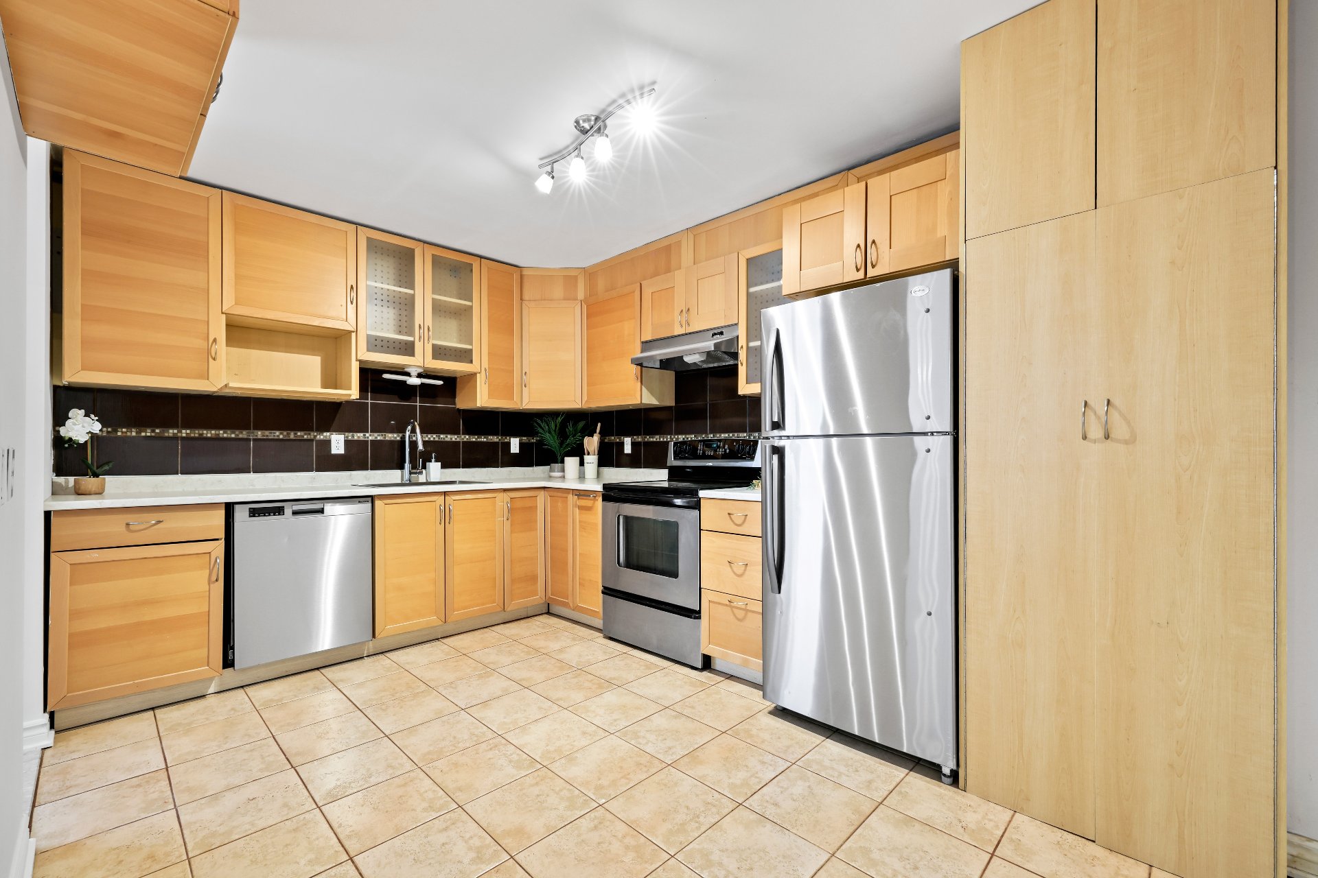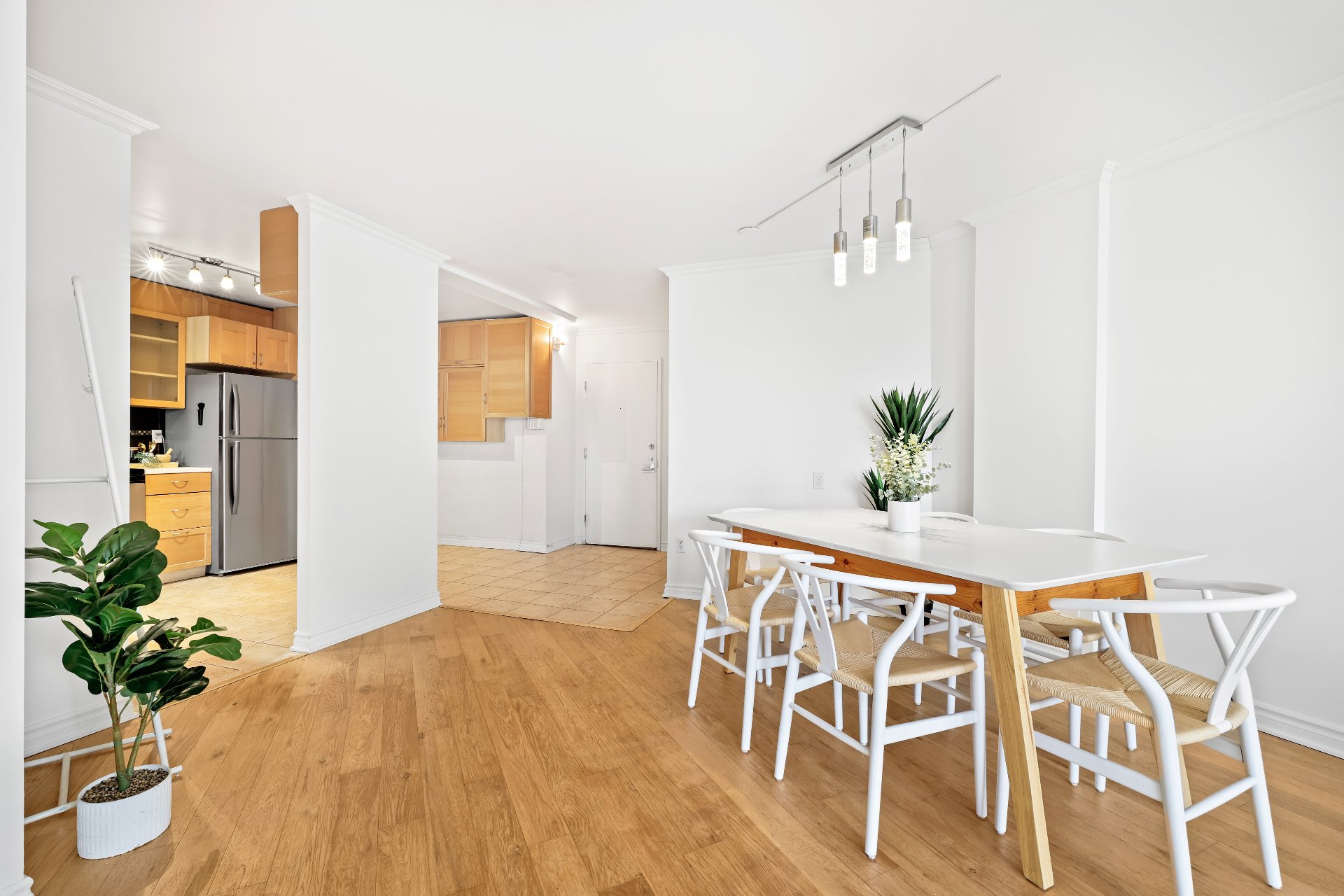 Beautiful two-bedroom condo featuring an impressively sized living room and dining area. West-facing orientation ensures abundant natural light. Kitchen with new countertop, sink, and faucet, offering plenty of cabinetry and the possibility of adding an island. Walk-in entry closet. Storage space in the basement and indoor garage. A visit is a must!