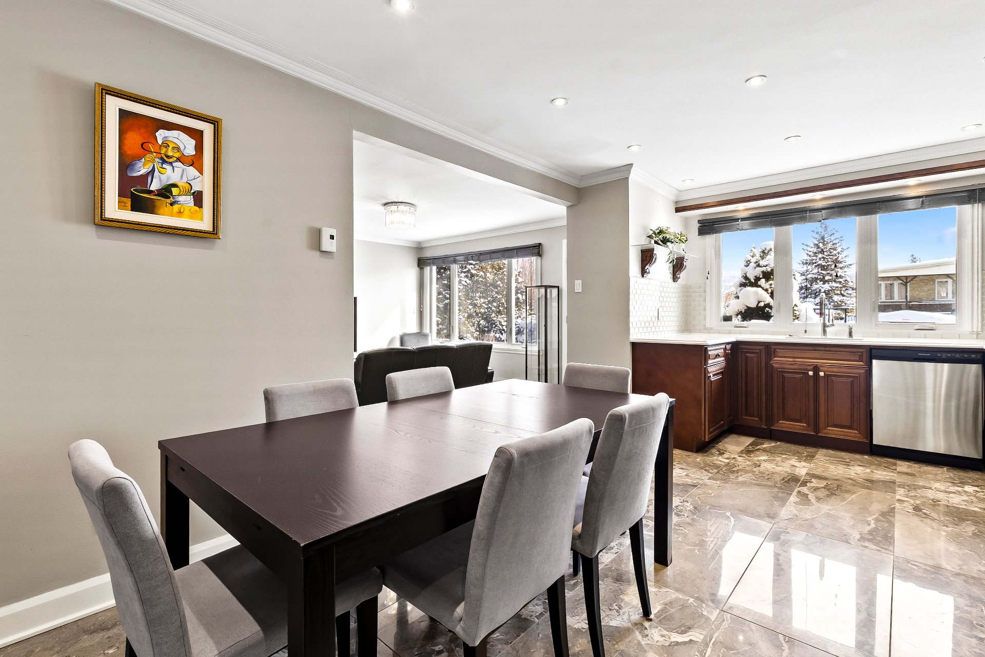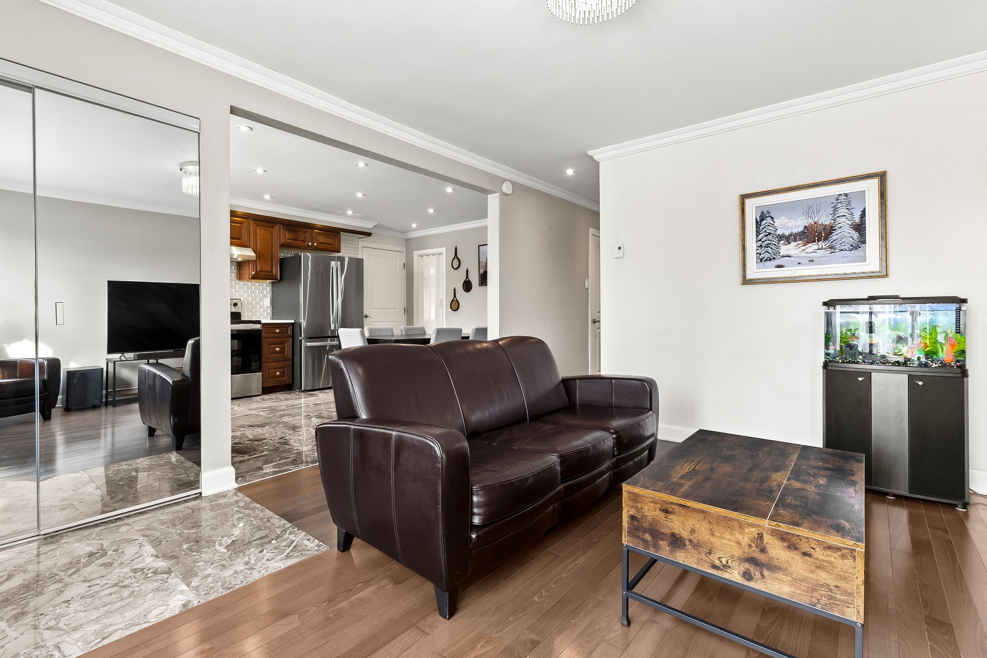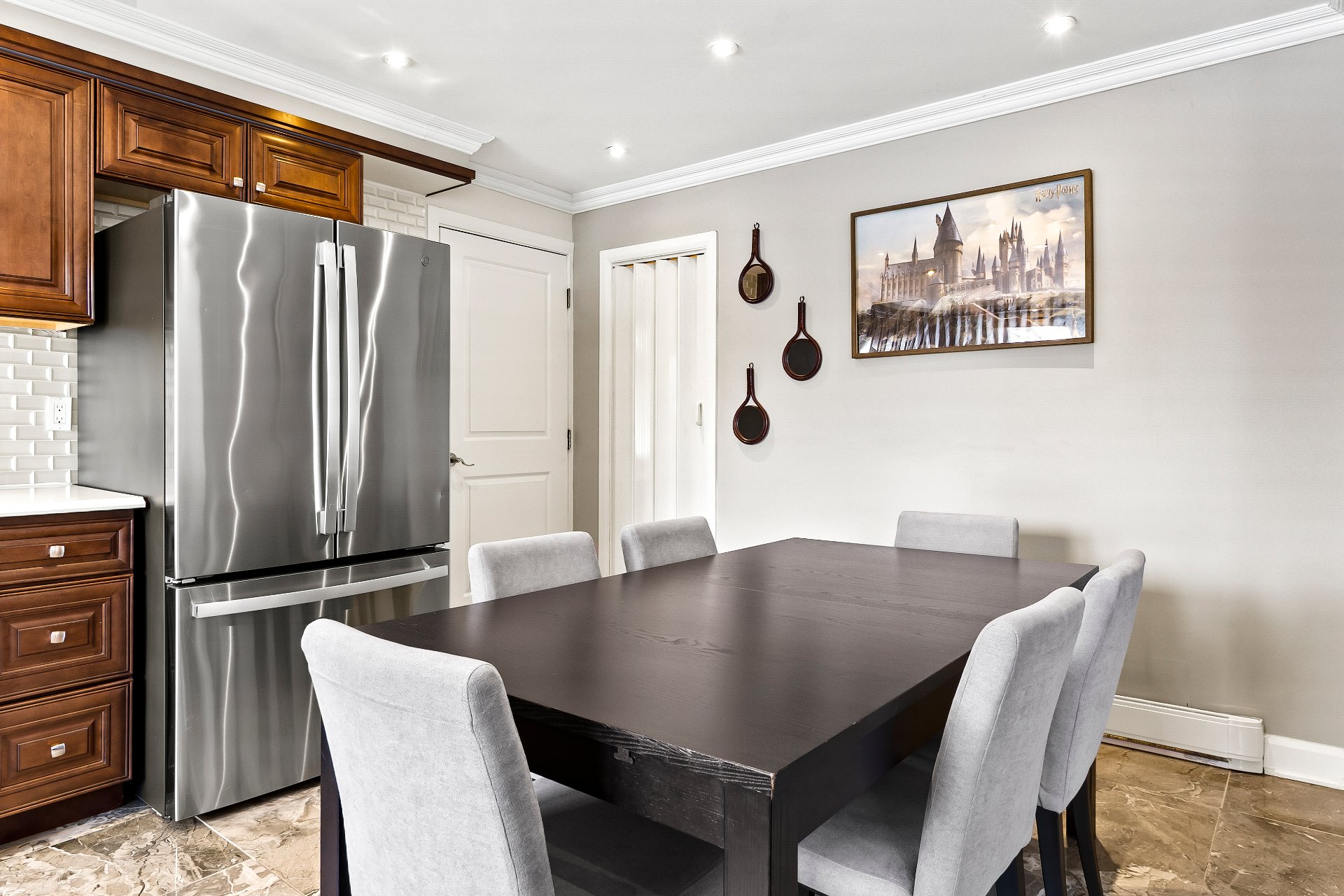 Discover this bungalow featuring renovated kitchen that is both functional and inviting, along with two updated bathrooms showcasing a clean, contemporary style. The property offers a total of 6 bedrooms, including three on the main level. The basement, arranged as a secondary living space, is ideal for accommodating a family member independently while preserving privacy. A large finished garage with a sauna completes this meticulously maintained home. Located in a sought-after area just a 10-minute walk from the Vimont train station, this property offers a practical lifestyle and a layout designed to grow with your family(Bigeneration type)!