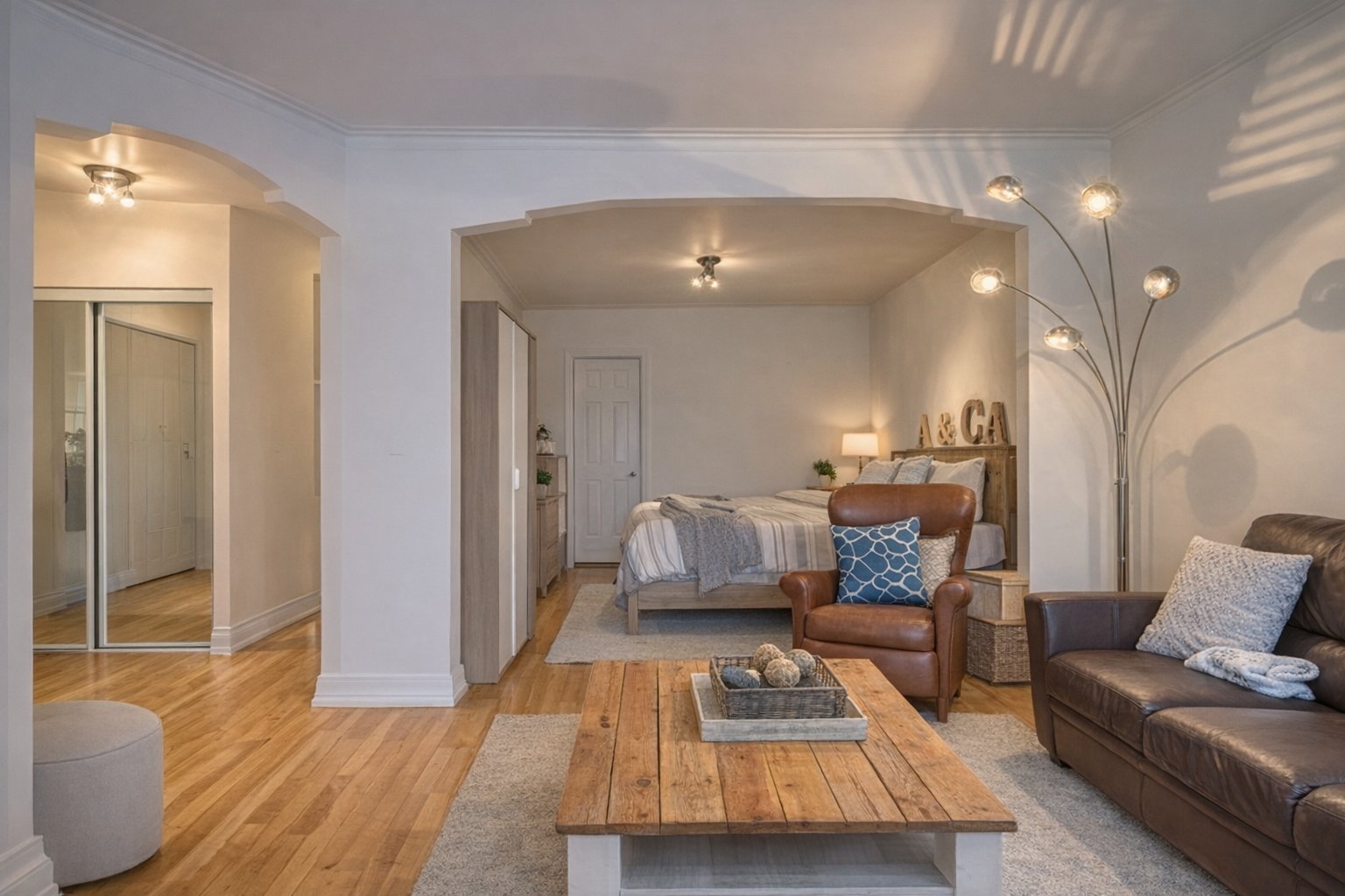 apartment features two bedrooms, a cozy living area with a