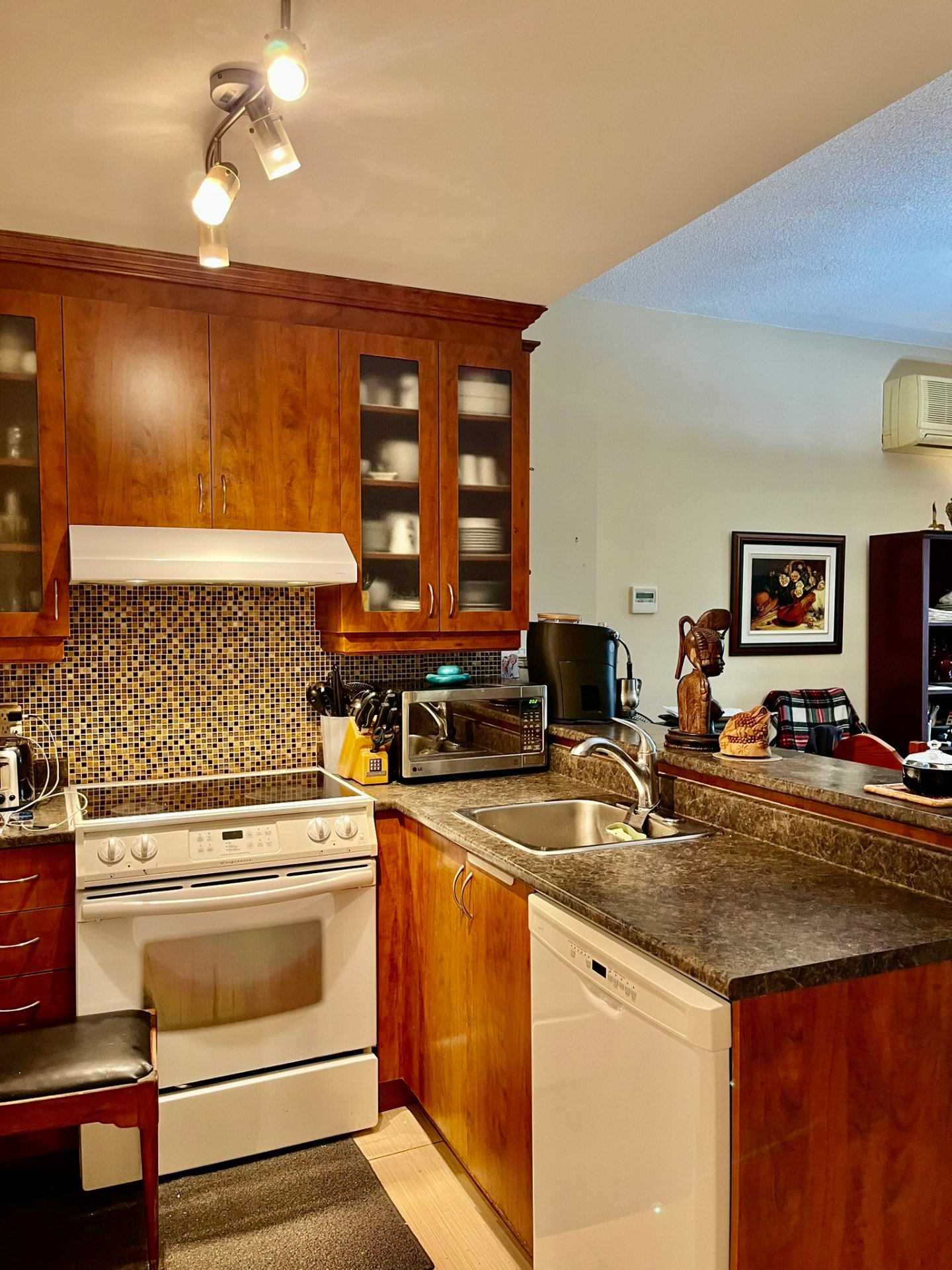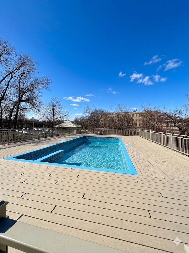 DOMAINE ANDRÉ-GRASSET PHASE 4. Superb turnkey 3 ½ on the 3rd floor, fully furnished and equipped. Warm decor, kitchen with wooden cabinets and mosaic backsplash, 1 bedroom, washer/dryer. Enjoy an exceptional quality of life: outdoor pool, full gym, and landscaped gardens. Strategic location in Ahuntsic (8540 Raymond-Pelletier): within walking distance to Crémazie metro, Complexe Claude-Robillard, and Collège André-Grasset. Quick access to highways 40/15. Available from May 14, 2026, to February 7, 2027.
